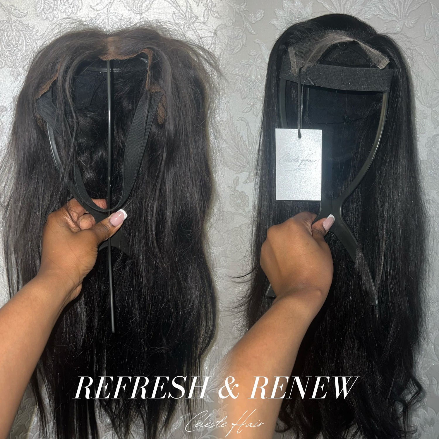 Transform your hair with our exclusive Refresh & Renew service! Whether you have bundles or a wig that needs a little TLC, we’ve got you covered. Our service includes washing, deep conditioning, and restyling your hairpieces to bring them back to life. Perfect for those looking to refresh their hair without the hassle.
